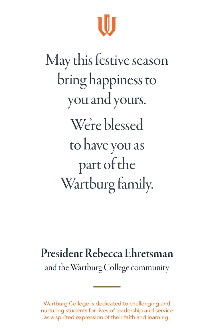 Wartburg logo centered in gold rays, WARTBURG COLLEGE written under neath